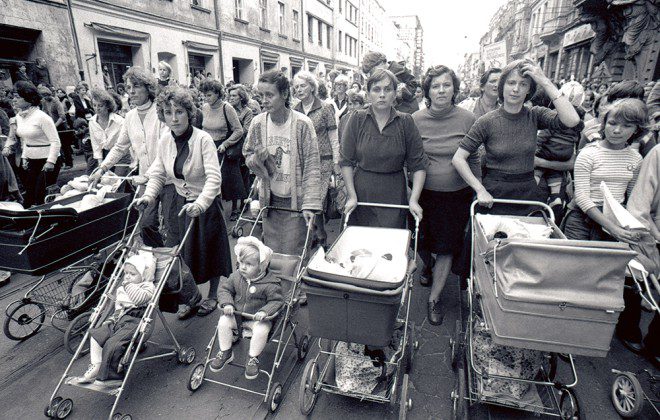 Na początku lat 80. Polskę ogarnęły protesty. Ruch związkowy, który zjednoczył robotników, inteligencję, chłopów i studentów przekształcił się w potężny ruch obywatelski, który mając za zadanie społeczne ochronę praw społeczno-ekonomicznych robotników, wspomógł kształtowanie się społeczeństwa obywatelskiego i doprowadził do demokratyzacji kraju. Strajkami zostały dotknięte niemal wszystkie większe polskie miasta: Warszawa, Poznań, Gdańsk. Miasto Łódź, w którym na początku lat 80. liczba ludności wynosiła ponad 800 tys. osób, nie było wyjątkiem. Latem 1981 roku odbył się w Łodzi marsz tysięcy zdesperowanych kobiet. Wiele z nich przyszło na protest razem z dziećmi – pisze lodzanka.eu.